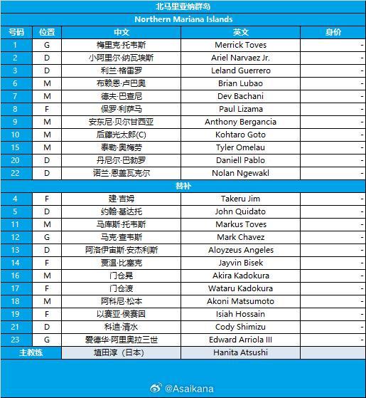 首发身价方面,U22国足为252.5万欧,北马里亚纳群岛则全队基本为业余球员,身价为0。
